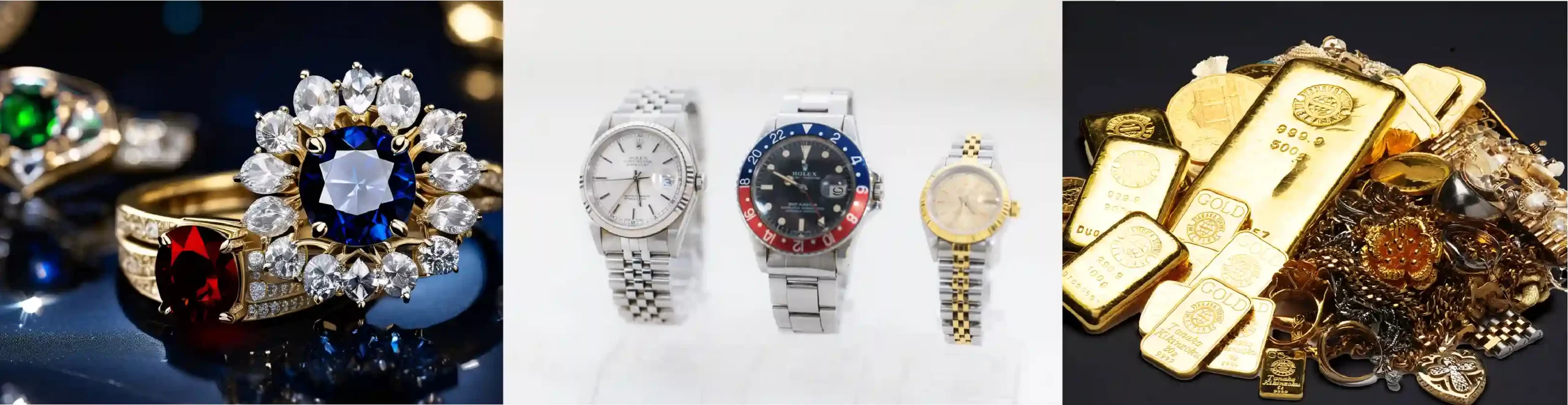 貴金属・ジュエリー・ブランド品の高価買取なら、当店にお任せください。ダイヤモンドや色石をはじめとするジュエリー全般、インゴット・金・プラチナなどの地金・貴金属・材料、さらにはロレックスやオメガなどの高級時計、シャネル・ルイヴィトンなどのブランドバッグ・小物類まで、幅広くお取り扱いしております。